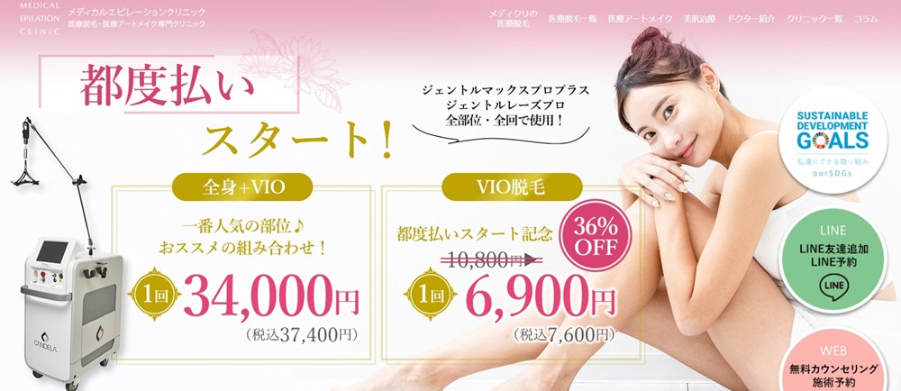 都度払い制なので、「気になる部分だけ脱毛したい」「試しに数回だけ受けてみたい」という方にもぴったりです。無理なく通える料金プランが魅力です。