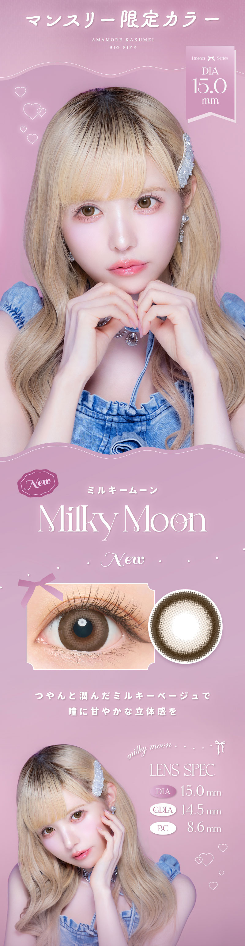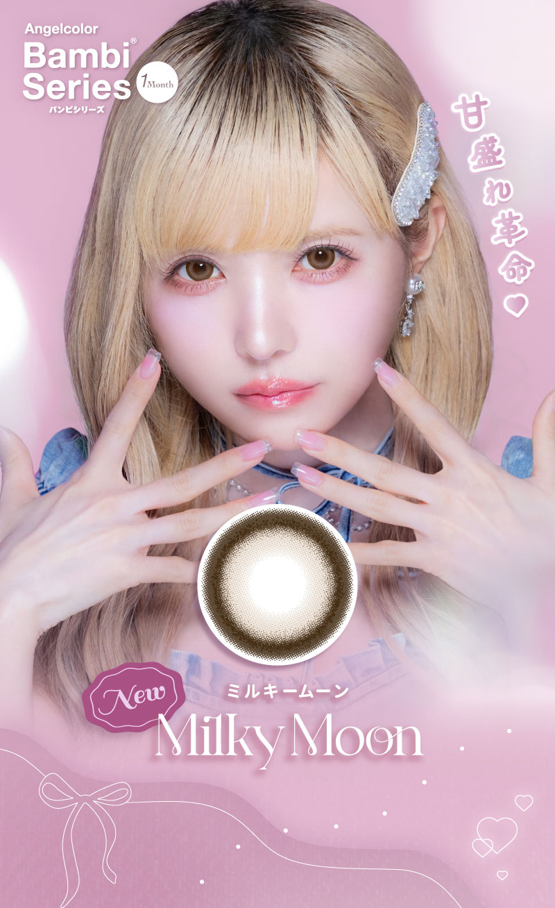他の画像を見る 【即日発送OK♪】 AngelColor Bambi Series 1month エンジェルカラーバンビシリーズワンマンス ミルキームーン(1箱2枚入り) 送料無料 即日発送 ネコポス UVカット うるおい成分 ナチュラル 色素薄い系 ブラウン ベージュ 1ヶ月 DIA15.0mm 着色直径14.0㎜以上 BC8.6mm 含水率38% フチあり 販売価格 ¥ 1,760 税込 カートに入れる お気に入りに登録する