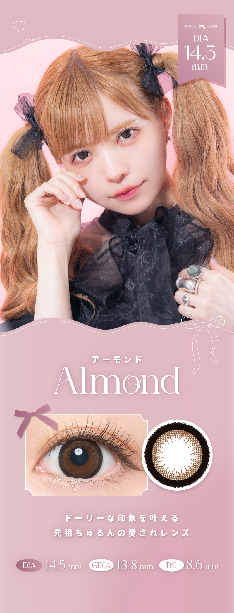 他の画像を見る 【即日発送OK♪】 AngelColor Bambi Series 1month エンジェルカラーバンビシリーズワンマンス アーモンド(1箱2枚入り) 送料無料 即日発送 ネコポス UVカット うるおい成分 ナチュラル ブラウン 1ヶ月 DIA14.5mm 着色直径13.8㎜ BC8.6mm 含水率38% フチあり 販売価格 ¥ 1,760 税込 カートに入れる お気に入りに登録する