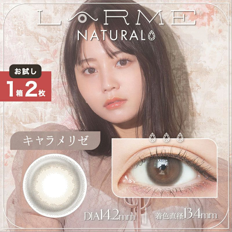 他の画像を見る 【即日発送OK♪】 お試し用♪LARME NATURAL ラルムナチュラル キャラメリゼ(1箱2枚入り) 送料無料 即日発送 ネコポス UVカット うるおい成分 ナチュラル 色素薄い系 ブラウン ピンク 1day DIA14.2mm 着色直径13.4㎜ BC8.7mm 含水率58% フチあり 3箱同時購入で1箱分無料! 販売価格 ¥ 550 税込 カートに入れる お気に入りに登録する