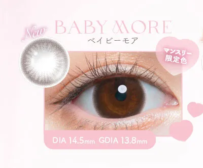 他の画像を見る 【即日発送OK♪】 Chu's me monthly チューズミーマンスリー ベイビーモア(1箱2枚入り) 送料無料 即日発送 ネコポス UVカット うるおい成分 ナチュラル 色素薄い系 ブラウン 1ヶ月 DIA14.5mm 着色直径13.8㎜ BC8.6mm 含水率38% 販売価格 ¥ 1,705 税込 カートに入れる お気に入りに登録する