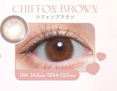 他の画像を見る 【即日発送OK♪】 Chu's me monthly チューズミーマンスリー シフォンブラウン(1箱2枚入り) 送料無料 即日発送 ネコポス UVカット うるおい成分 ナチュラル 色素薄い系 ブラウン 1ヶ月 DIA14.2mm 着色直径13.5㎜ BC8.6mm 含水率38% フチあり 販売価格 ¥ 1,705 税込 カートに入れる お気に入りに登録する