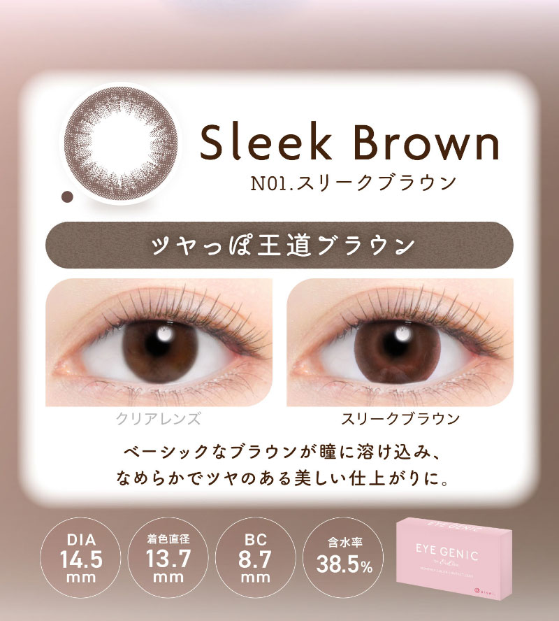 他の画像を見る 【即日発送OK♪】 《度なし》EYEGENIC by EverColor アイジェニック by エバーカラー スリークブラウン(1箱2枚入り) 送料無料 即日発送 ネコポス 度なしのみ ナチュラル ブラウン 1ヶ月 DIA14.5mm 着色直径13.7㎜ BC8.7mm 含水率38.5% 販売価格 ¥ 1,650 税込 カートに入れる お気に入りに登録する