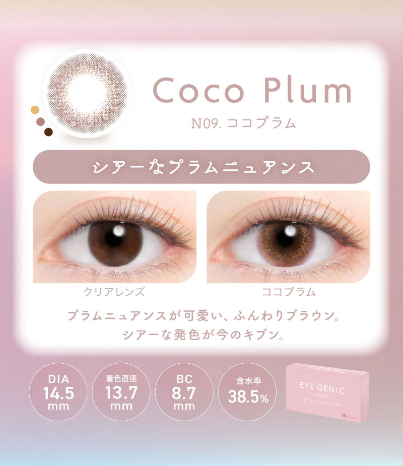 他の画像を見る 【即日発送OK♪】 【度あり】EYEGENIC by EverColor アイジェニック by エバーカラー ココプラム(1箱1枚入り) 送料無料 即日発送 ネコポス 度ありのみ ナチュラル ハーフ瞳 ブラウン 1ヶ月 DIA14.5mm 着色直径13.7㎜ BC8.7mm 含水率38.5% 販売価格 ¥ 825 税込 カートに入れる お気に入りに登録する