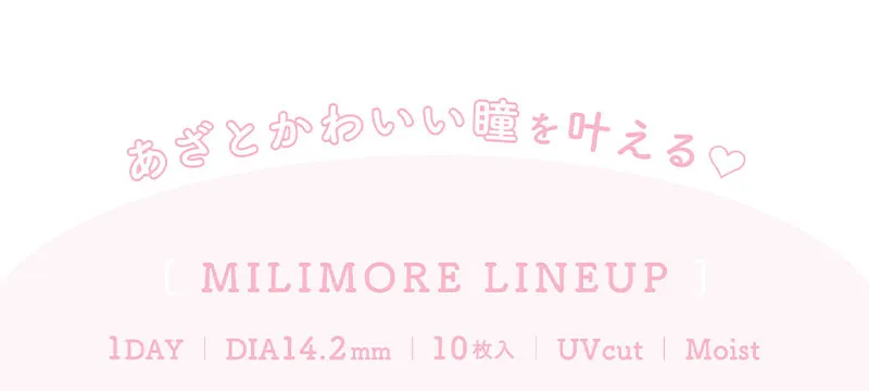 他の画像を見る 【即日発送OK♪】 EverColor1day MILIMORE エバーカラーワンデーミリモア なまいきシュガー(1箱10枚入り) 送料無料 即日発送 ネコポス UVカット うるおい成分 ナチュラル 色素薄い系 水光 グレー 1day DIA14.2mm 着色直径13.6㎜ BC8.7mm 含水率60% フチあり 販売価格 ¥ 1,694 税込 カートに入れる お気に入りに登録する