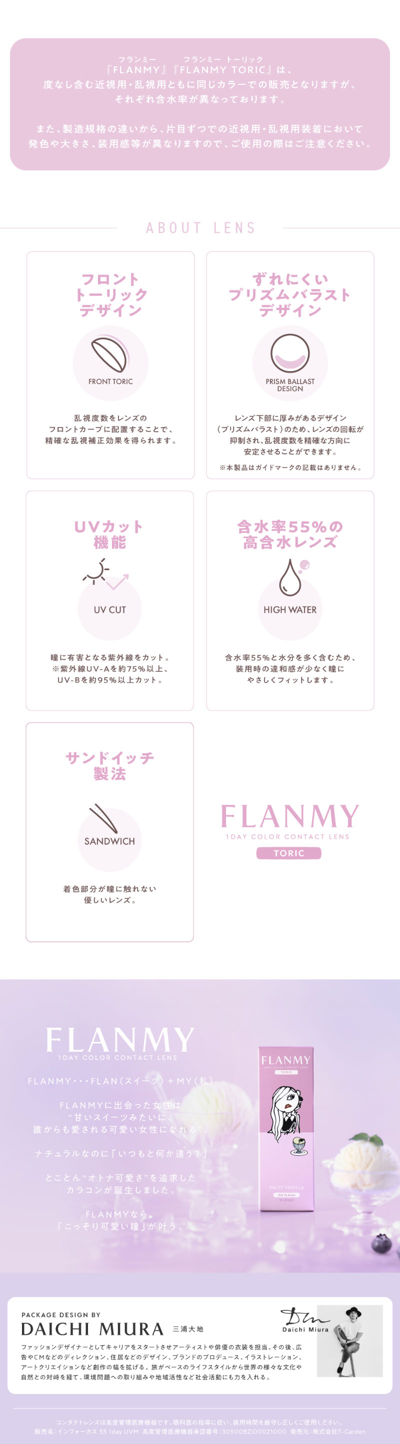 他の画像を見る 【即日発送OK♪】 【乱視用】FLANMY TORIC フランミートーリック ソルティーバニラ -0.75D/180°(1箱10枚入り) 送料無料 即日発送 UVカット うるおい成分 乱視用 ナチュラル 色素薄い系 グレー 1day DIA14.5mm 着色直径13.7㎜ BC8.6mm 含水率55% フチあり 販売価格 ¥ 1,815 税込 カートに入れる お気に入りに登録する