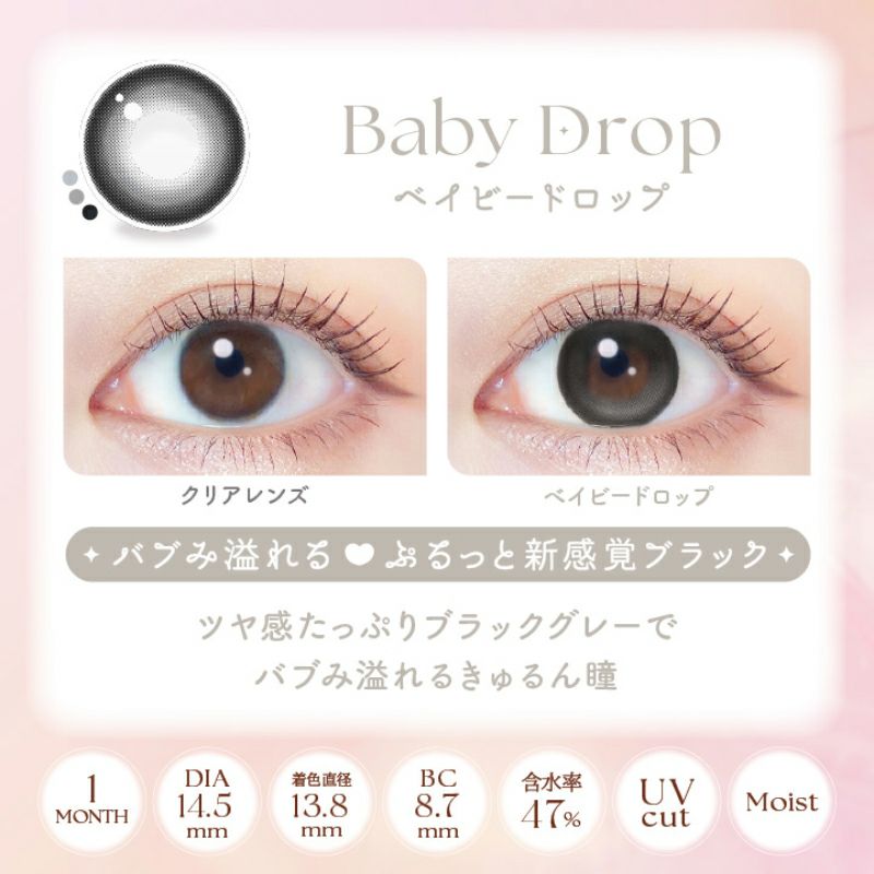 他の画像を見る 【即日発送OK♪】 EverColor1MONTH エバーカラーワンマンス シリコーン ベイビードロップ(1箱2枚入り) 送料無料 即日発送 ネコポス UVカット うるおい成分 シリコン ナチュラル 水光 ブラック 1ヶ月 DIA14.5mm 着色直径13.8㎜ BC8.7mm 含水率47% フチあり 販売価格 ¥ 1,760 税込 カートに入れる お気に入りに登録する