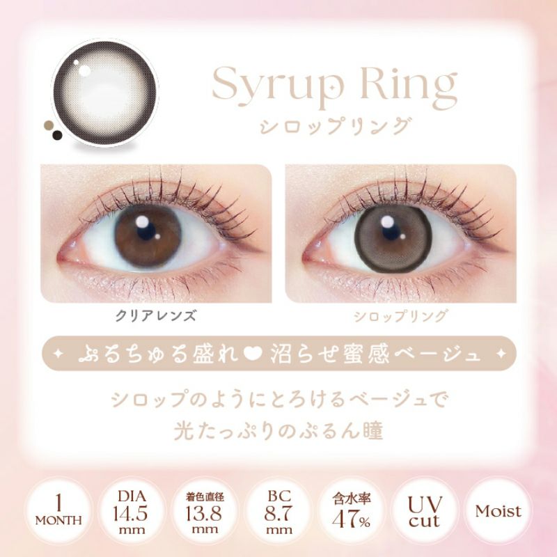 他の画像を見る 【即日発送OK♪】 EverColor1MONTH エバーカラーワンマンス シリコーン シロップリング(1箱2枚入り) 送料無料 即日発送 ネコポス UVカット うるおい成分 シリコン ナチュラル ブラウン 1ヶ月 DIA14.5mm 着色直径13.8㎜ BC8.7mm 含水率47% フチあり 販売価格 ¥ 1,760 税込 カートに入れる お気に入りに登録する