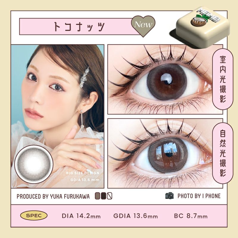 他の画像を見る 【即日発送OK♪】 MEiME! by LARME メイメ! by ラルム トコナッツ (1箱10枚入り) 送料無料 即日発送 ネコポス UVカット うるおい成分 ナチュラル 水光 ブラウン 1day DIA14.2mm 着色直径13.6㎜ BC8.7mm 含水率58% フチあり 3箱同時購入で1箱分無料! 販売価格 ¥ 1,760 税込 カートに入れる お気に入りに登録する
