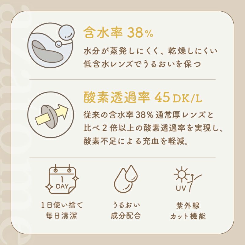 他の画像を見る 【即日発送OK♪】 お試し用♪azatome あざとめ ロールモデル(1箱2枚入り) 送料無料 即日発送 ネコポス UVカット うるおい成分 ハーフ瞳 色素薄い系 ブラウン ベージュ グレージュ 1day DIA14.0mm 着色直径12.9㎜以下 BC8.7mm 含水率38% フチあり 販売価格 ¥ 396 税込 カートに入れる お気に入りに登録する