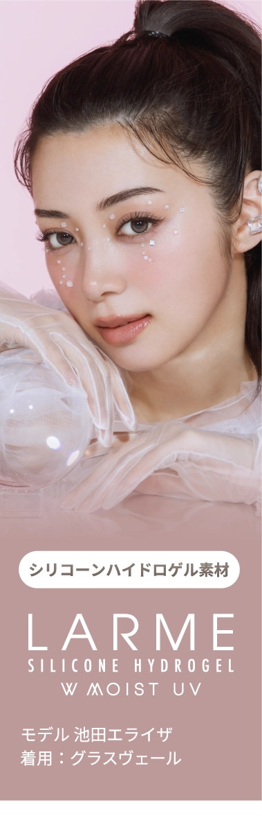 ラルム(LARME)のカラコンは、機能性にも優れています。うるおい成分であるMPCポリマー配合のレンズにより瞳のうるおいを長時間キープできる他、「ラルムモイスチャーUV」では紫外線から瞳を守るUVカット機能もついており、瞳に優しいカラコンとなっております。レンズ素材にも非イオン性レンズを使用することでレンズ汚れの原因になるタンパク質の吸収を防いでいます。