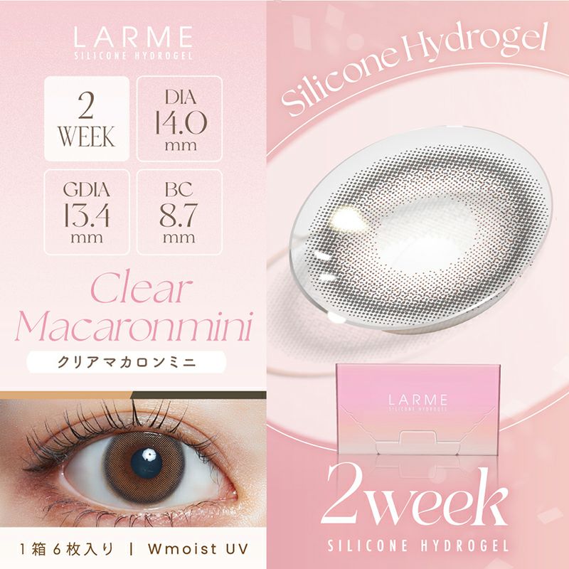 他の画像を見る 【即日発送OK♪】 LARME 2week Silicone ラルム 2ウィークシリコーン クリアマカロンミニ(1箱6枚入り) 送料無料 即日発送 ネコポス UVカット うるおい成分 シリコン ナチュラル 色素薄い系 ブラウン 2week 1ヶ月 DIA14.0mm 着色直径13.4㎜ BC8.7mm 含水率47% フチあり 販売価格 ¥ 2,090 税込 カートに入れる お気に入りに登録する