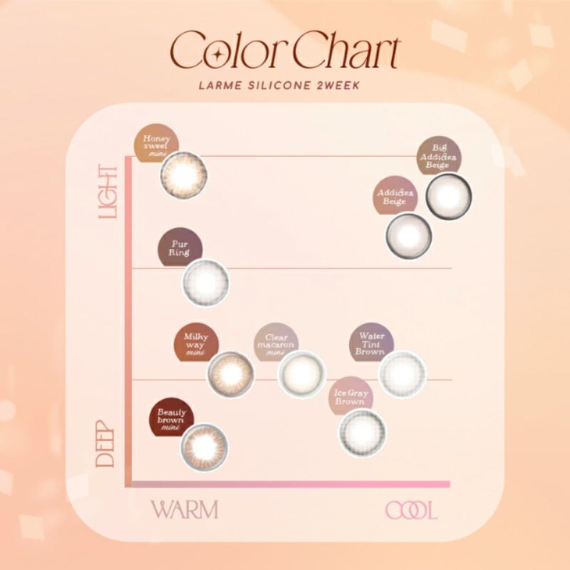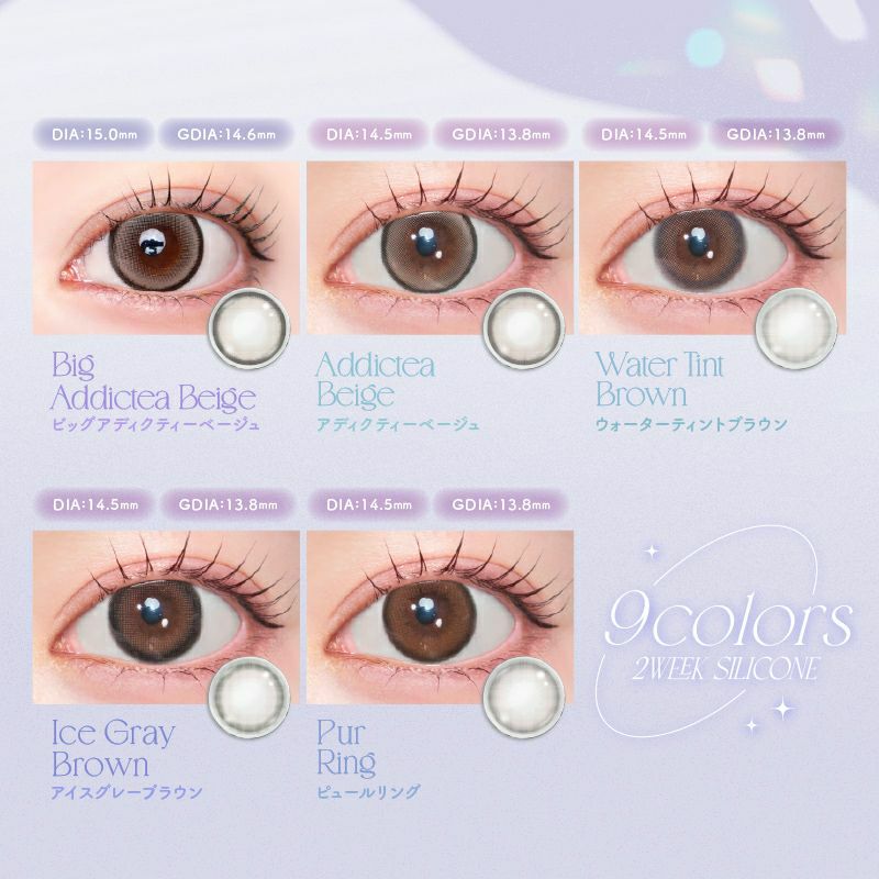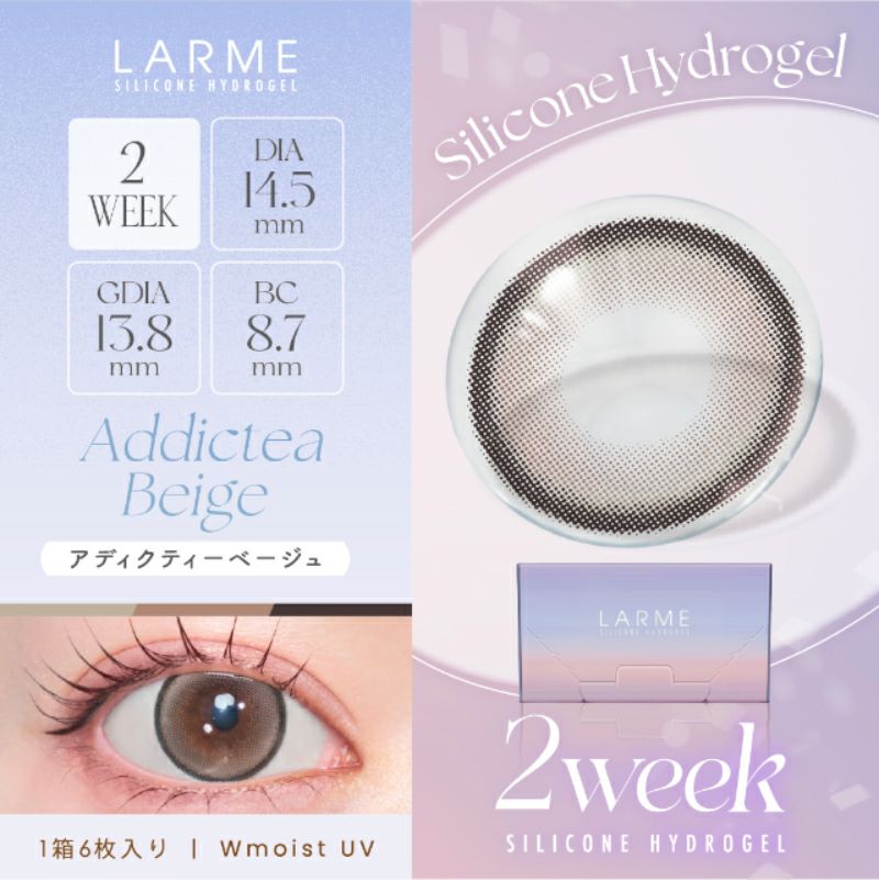 他の画像を見る 【即日発送OK♪】 LARME 2week Silicone ラルム 2ウィークシリコーン ビッグアディクティーベージュ(1箱6枚入り) 送料無料 即日発送 ネコポス UVカット うるおい成分 シリコン ナチュラル ハーフ瞳 色素薄い系 ブラウン ベージュ グレージュ 2week 1ヶ月 DIA15.0mm 着色直径14.0㎜以上 BC8.7mm 含水率47% フチあり 販売価格 ¥ 2,090 税込 カートに入れる お気に入りに登録する