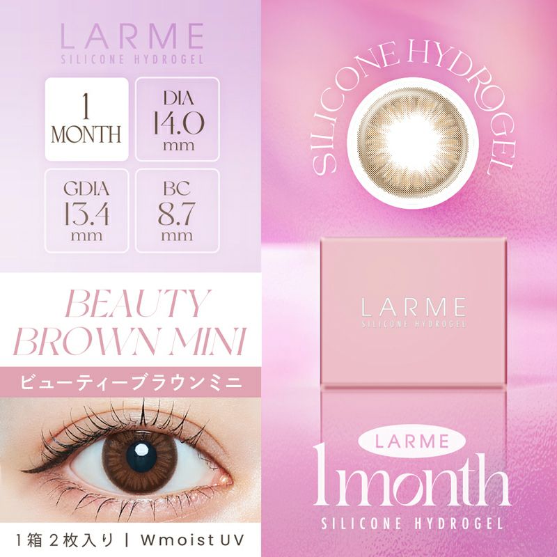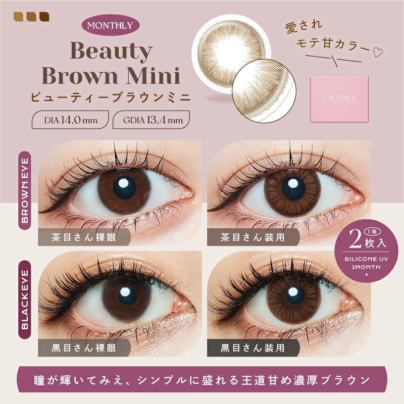 他の画像を見る 【在庫限りで終売】 LARME 1month Silicone ラルム ワンマンス シリコーン ビューティーブラウンミニ(1箱2枚入り) 送料無料 即日発送 ネコポス UVカット うるおい成分 シリコン ナチュラル ブラウン 1ヶ月 DIA14.0mm 着色直径13.4㎜ BC8.7mm 含水率47% フチあり 販売価格 ¥ 1,100 税込 カートに入れる お気に入りに登録する
