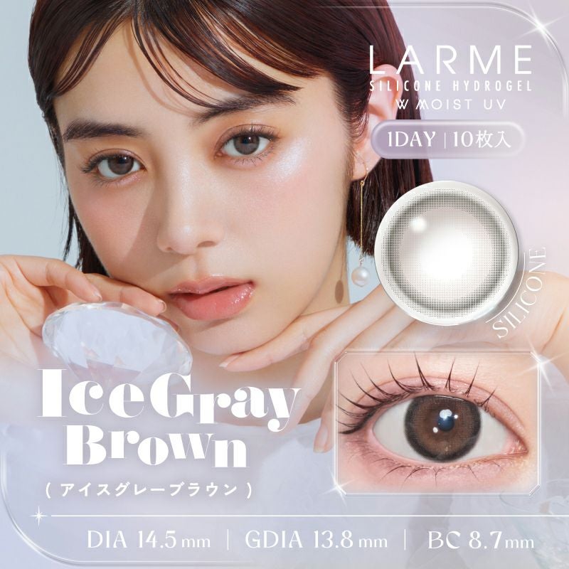 他の画像を見る 【即日発送OK♪】 LARME ラルムシリコンハイドロゲルダブルモイストUV アイスグレーブラウン (1箱10枚入り) 送料無料 即日発送 ネコポス UVカット うるおい成分 シリコン ナチュラル ハーフ瞳 色素薄い系 ブラウン グレー 1day DIA14.5mm 着色直径13.8㎜ BC8.7mm 含水率47% フチあり 3箱同時購入で1箱分無料! 販売価格 ¥ 1,760 税込 カートに入れる お気に入りに登録する