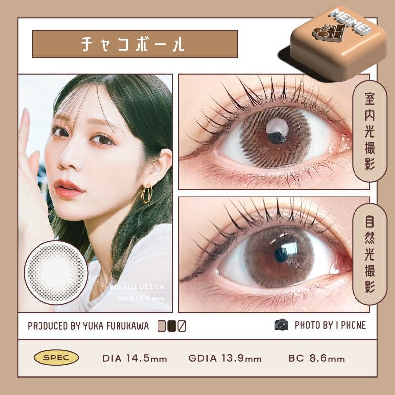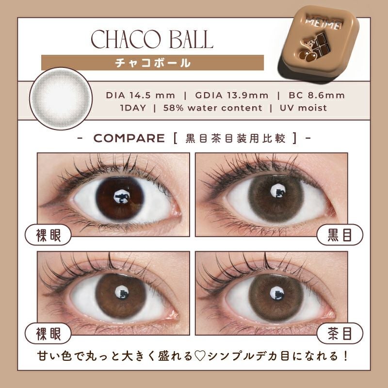 他の画像を見る 【即日発送OK♪】 MEiME! by LARME メイメ! by ラルム チャコボール (1箱10枚入り) 送料無料 即日発送 ネコポス UVカット うるおい成分 ナチュラル 色素薄い系 ブラウン 1day DIA14.5mm 着色直径13.9㎜ BC8.6mm 含水率58% フチあり 3箱同時購入で1箱分無料! 販売価格 ¥ 1,760 税込 カートに入れる お気に入りに登録する