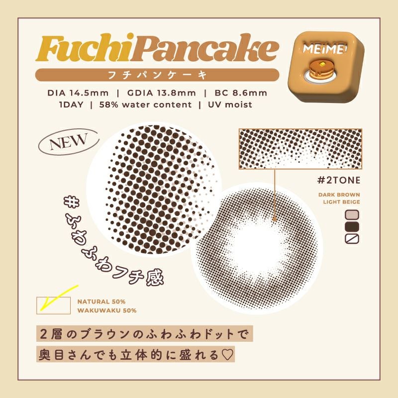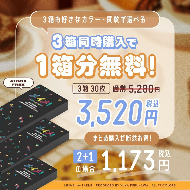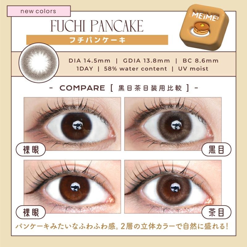 他の画像を見る 【即日発送OK♪】 MEiME! by LARME メイメ! by ラルム フチパンケーキ (1箱10枚入り) 送料無料 即日発送 ネコポス UVカット うるおい成分 ナチュラル ブラウン 1day DIA14.5mm 着色直径13.8㎜ BC8.6mm 含水率58% フチあり 3箱同時購入で1箱分無料! 販売価格 ¥ 1,760 税込 カートに入れる お気に入りに登録する