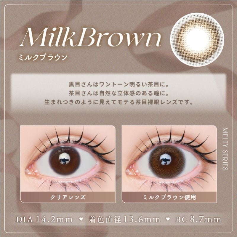 他の画像を見る 【即日発送OK♪】 LARME MELTY 1month ラルムメルティワンマンス ミルクブラウン(1箱2枚入り) 送料無料 即日発送 ネコポス UVカット うるおい成分 ナチュラル 色素薄い系 ブラウン 1ヶ月 DIA14.2mm 着色直径13.6㎜ BC8.7mm 含水率38% フチあり 販売価格 ¥ 1,650 税込 カートに入れる お気に入りに登録する