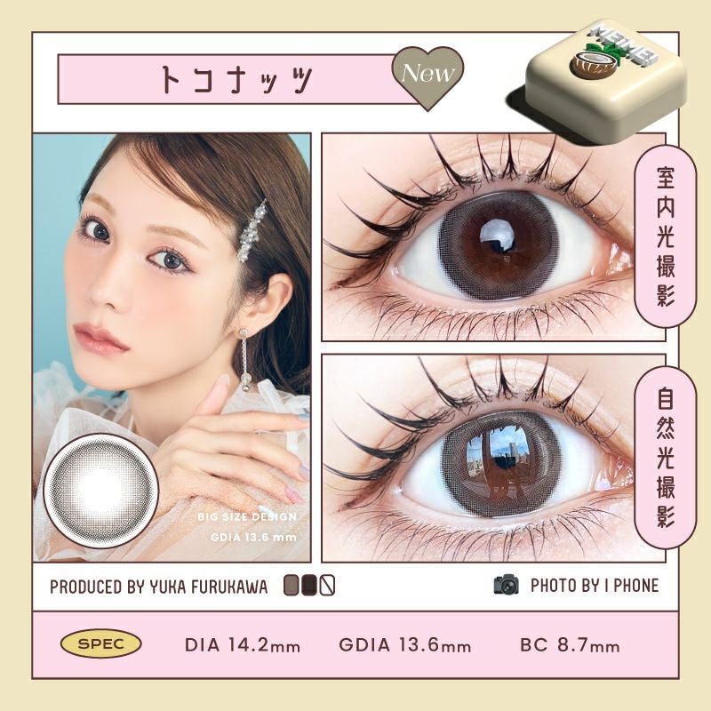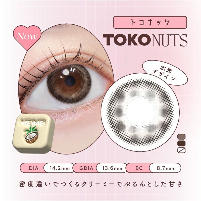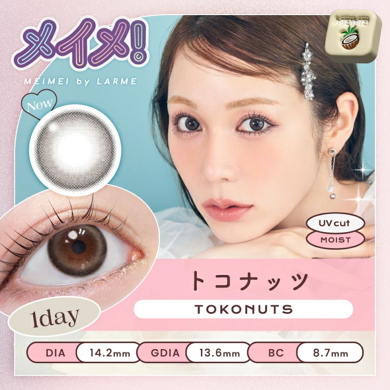 他の画像を見る 【即日発送OK♪】 MEiME! by LARME メイメ! by ラルム トコナッツ (1箱10枚入り) 送料無料 即日発送 ネコポス UVカット うるおい成分 ナチュラル 水光 ブラウン 1day DIA14.2mm 着色直径13.6㎜ BC8.7mm 含水率58% フチあり 3箱同時購入で1箱分無料! 販売価格 ¥ 1,760 税込 カートに入れる お気に入りに登録する