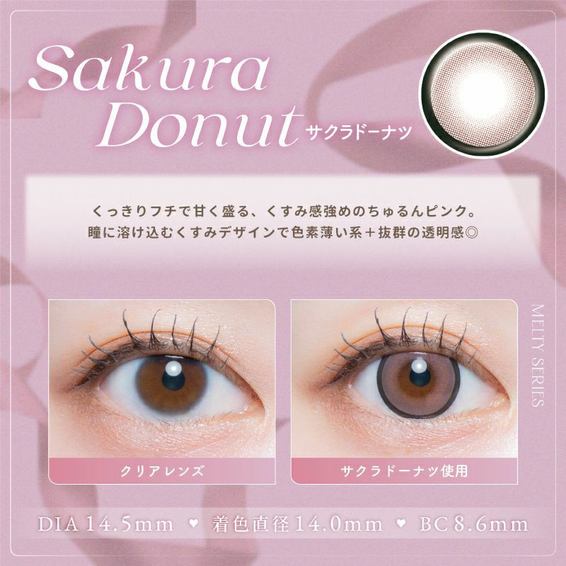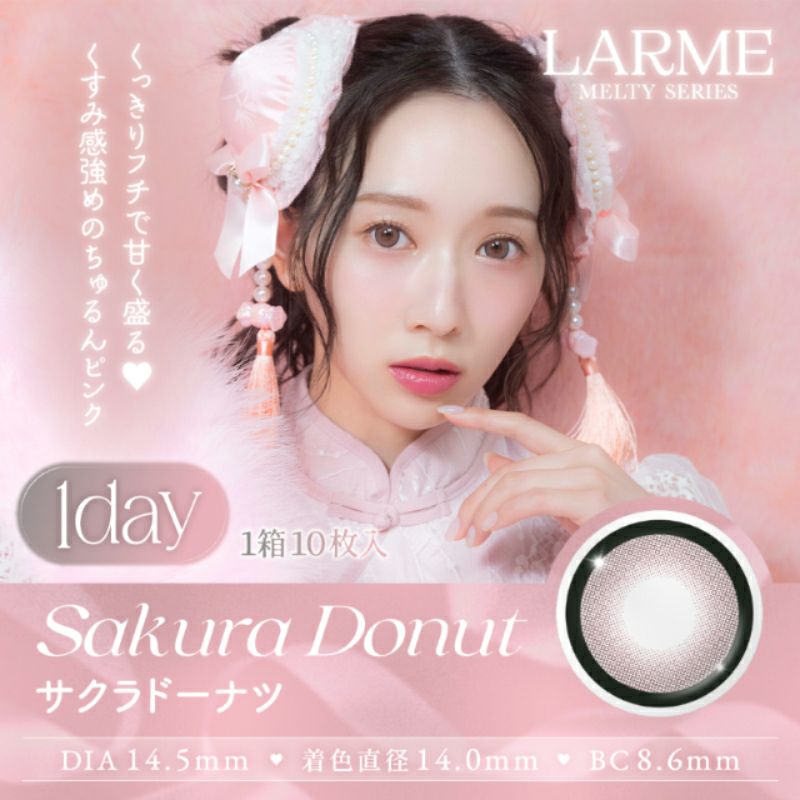 他の画像を見る 【即日発送OK♪】 《数量限定》LARME MELTY SERIES ラルムメルティシリーズ サクラドーナツ(1箱10枚入り) 送料無料 即日発送 ネコポス UVカット うるおい成分 ナチュラル 色素薄い系 ブラウン ピンク 1day DIA14.5mm 着色直径14.0㎜以上 BC8.6mm 含水率58% フチあり 3箱同時購入で1箱分無料! 販売価格 ¥ 1,760 税込 カートに入れる お気に入りに登録する