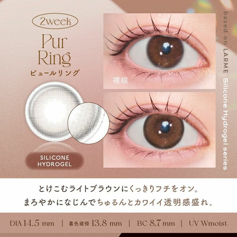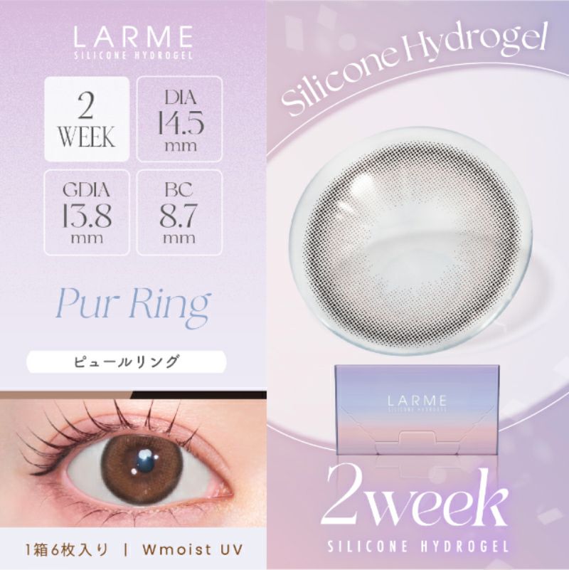 他の画像を見る 【即日発送OK♪】 LARME 2week Silicone ラルム 2ウィークシリコーン ピュールリング(1箱6枚入り) 送料無料 即日発送 ネコポス UVカット うるおい成分 シリコン ナチュラル 色素薄い系 ブラウン 2week 1ヶ月 DIA14.5mm 着色直径13.8㎜ BC8.7mm 含水率47% フチあり 販売価格 ¥ 2,090 税込 カートに入れる お気に入りに登録する