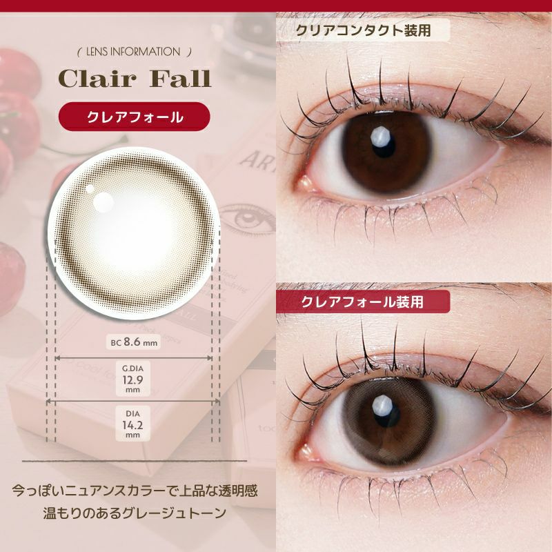 他の画像を見る 【即日発送OK♪】 too cool for school ARTCLASS 1day トゥークールフォースクールアートクラス クレアフォール(1箱10枚入り) 送料無料 即日発送 ネコポス うるおい成分 ナチュラル 色素薄い系 ブラウン ベージュ グレージュ 1day DIA14.2mm 着色直径12.9㎜以下 BC8.6mm 含水率38.5% フチあり 3箱同時購入で1箱分無料! 販売価格 ¥ 1,760 税込 カートに入れる お気に入りに登録する