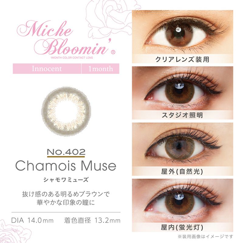 他の画像を見る 【即日発送NG】 【度あり】MicheBloomin' Monthly ミッシュブルーミンマンスリー シャモワミューズ(1箱1枚入り) 送料無料 ネコポス ナチュラル ハーフ瞳 ブラウン 1ヶ月 DIA14.0mm 着色直径13.2㎜ BC8.7mm 含水率38% 販売価格 ¥ 1,298 税込 完売 カートに入れる お気に入りに登録する