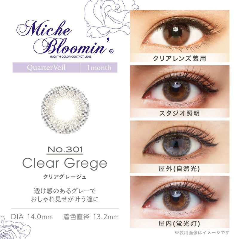 他の画像を見る 【在庫限りで終売】 【度あり】MicheBloomin' Monthly ミッシュブルーミンマンスリー クリアグレージュ(1箱1枚入り) 送料無料 ネコポス ハーフ瞳 ブラウン 1ヶ月 DIA14.0mm 着色直径13.2㎜ BC8.7mm 含水率38% 販売価格 ¥ 1,298 税込 完売 カートに入れる お気に入りに登録する