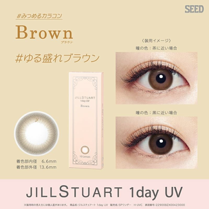 他の画像を見る 【販売終了】 JILL STUART 1day UV ジルスチュアート ワンデー UV ブラウン(1箱10枚入り) 送料無料 ネコポス UVカット うるおい成分 ナチュラル ブラウン 1day DIA14.2mm 着色直径13.6㎜ BC8.7mm 含水率58% 販売価格 ¥ 1,925 税込 完売 カートに入れる お気に入りに登録する