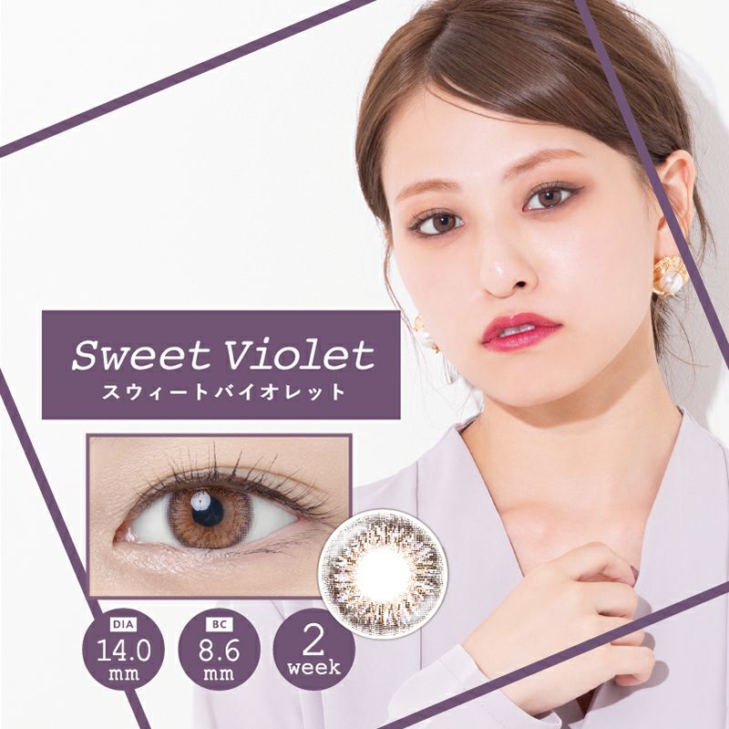 他の画像を見る 【即日発送NG】 Sweetheart 2week スウィートハート2week スウィートバイオレット(1箱2枚入り) 送料無料 ネコポス ナチュラル パープル 2week DIA14.0mm 着色直径13.0㎜ BC8.6mm 含水率38% フチあり 販売価格 ¥ 825 税込 カートに入れる お気に入りに登録する