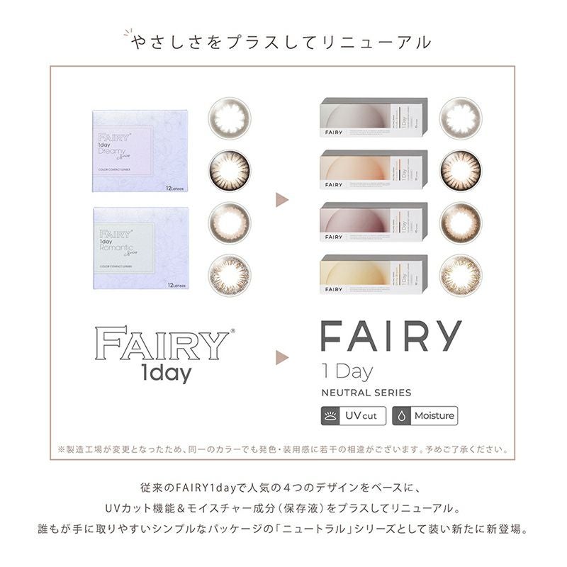 他の画像を見る 【即日発送NG】 FAIRY 1Day NEUTRAL SERIES フェアリーワンデー ニュートラルシリーズ カーキブラウン(1箱10枚入り) 送料無料 ネコポス UVカット うるおい成分 ナチュラル ブラウン 1day DIA14.5mm 着色直径13.8㎜ BC8.6mm 含水率38% フチあり 3箱同時購入で超得 販売価格 ¥ 1,738 税込 カートに入れる お気に入りに登録する