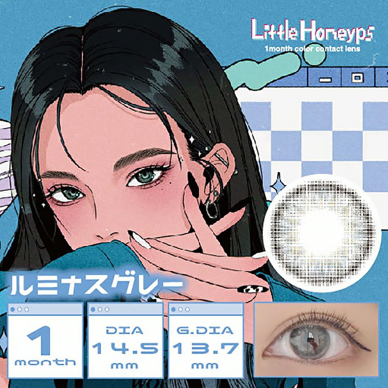 他の画像を見る 【即日発送NG】 LittleHoneyps リトルハニップ ルミナスグレー(1箱3枚入り) 送料無料 ネコポス うるおい成分 ナチュラル ハーフ瞳 グレー 1ヶ月 DIA14.5mm 着色直径13.7㎜ BC8.7mm 含水率38.5% フチあり 販売価格 ¥ 1,760 税込 カートに入れる お気に入りに登録する
