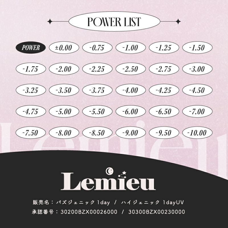 他の画像を見る 【即日発送NG】 Lemieu ルミュー ムーンメルツ(1箱10枚) 送料無料 ネコポス UVカット 色素薄い系 ブラウン 1day DIA14.2mm 着色直径13.0㎜ BC8.6mm 含水率38.5% フチあり 1箱から超得! 販売価格 ¥ 1,705 税込 カートに入れる お気に入りに登録する