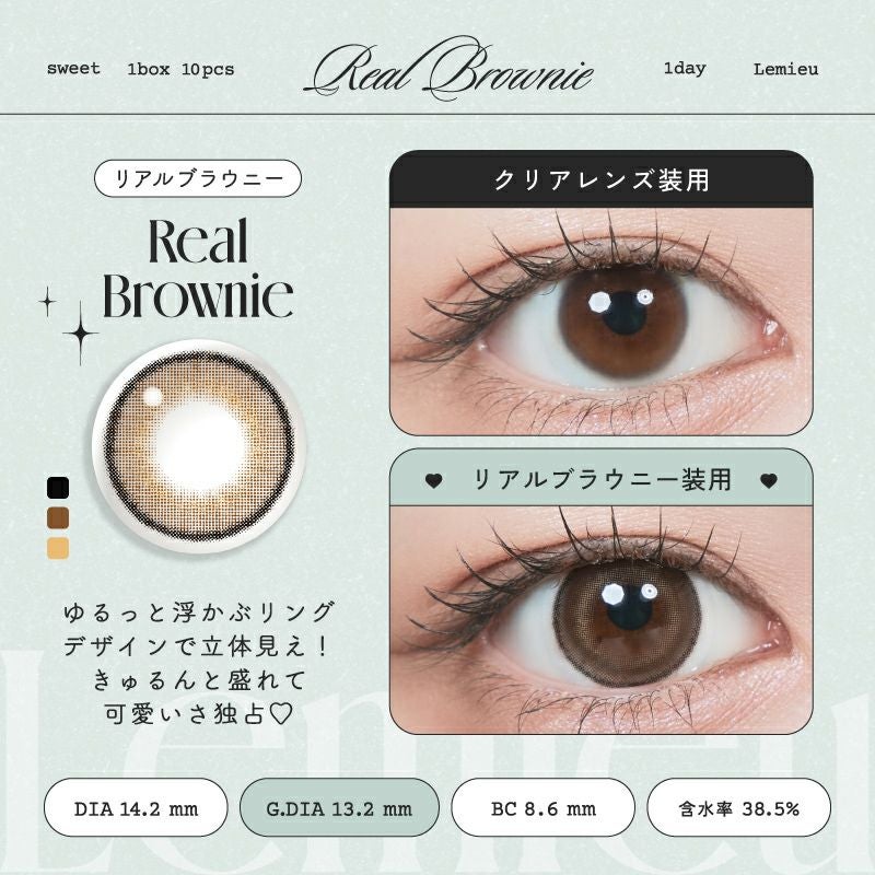 他の画像を見る 【即日発送NG】 Lemieu ルミュー リアルブラウニー(1箱10枚) 送料無料 ネコポス UVカット ナチュラル ブラウン 1day DIA14.2mm 着色直径13.2㎜ BC8.6mm 含水率38.5% フチあり 1箱から超得! 販売価格 ¥ 1,705 税込 カートに入れる お気に入りに登録する