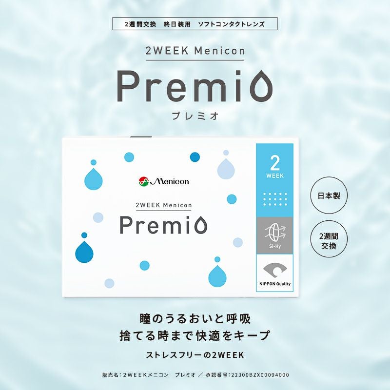 他の画像を見る 【即日発送NG】 2WEEK Menicon Premio ツーウィークメニコンプレミオ【BC8.6mm】(1箱6枚入り) 送料無料 ネコポス シリコン クリアレンズ 度ありのみ 2week DIA14.0mm BC8.6mm 含水率40% 販売価格 ¥ 1,980 税込 カートに入れる お気に入りに登録する