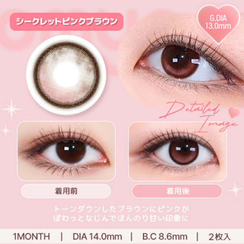他の画像を見る 【即日発送NG】 OMYO 1MONTH オマイオ シークレットピンクブラウン(1箱2枚入り) 送料無料 ネコポス ナチュラル 色素薄い系 水光 ブラウン ピンク 1ヶ月 DIA14.0mm 着色直径13.0㎜ BC8.6mm 含水率38.5% フチあり 販売価格 ¥ 1,485 税込 カートに入れる お気に入りに登録する