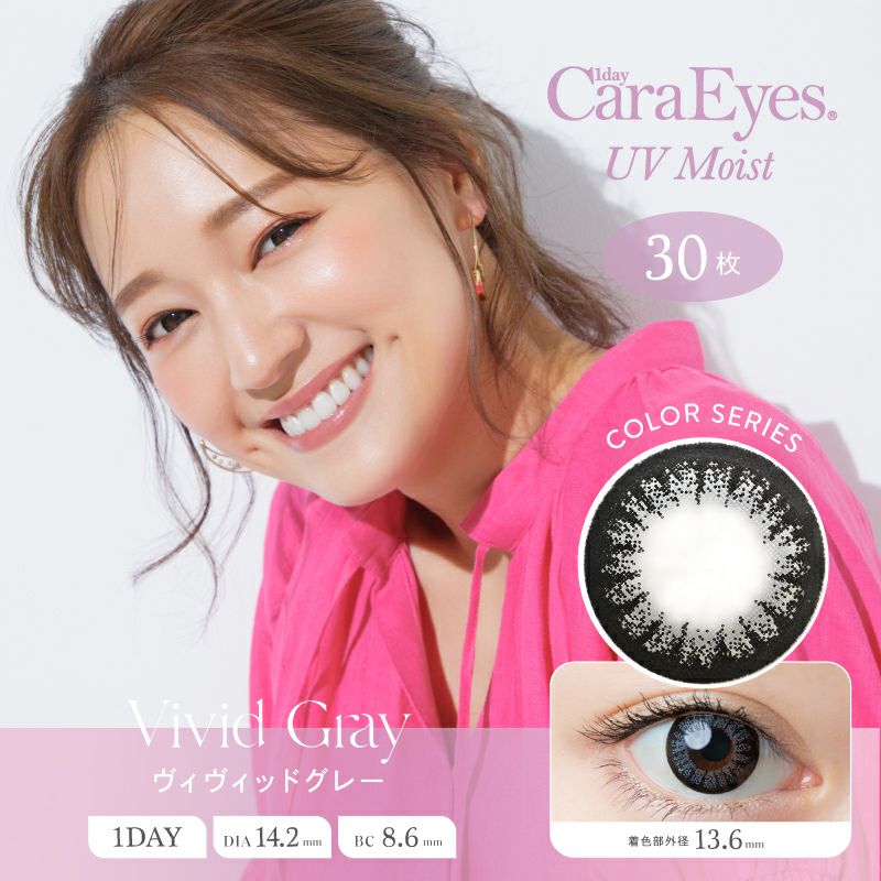 他の画像を見る 【即日発送NG】 1day Cara Eyes UV Moist Color Series ワンデーキャラアイ UVモイスト ヴィヴィッドグレー(1箱30枚入り) 送料無料 UVカット 宅配便のみ うるおい成分 ナチュラル ハーフ瞳 グレー 1day DIA14.2mm 着色直径13.6㎜ BC8.6mm 含水率42.5% フチあり 販売価格 ¥ 3,707 税込 カートに入れる お気に入りに登録する