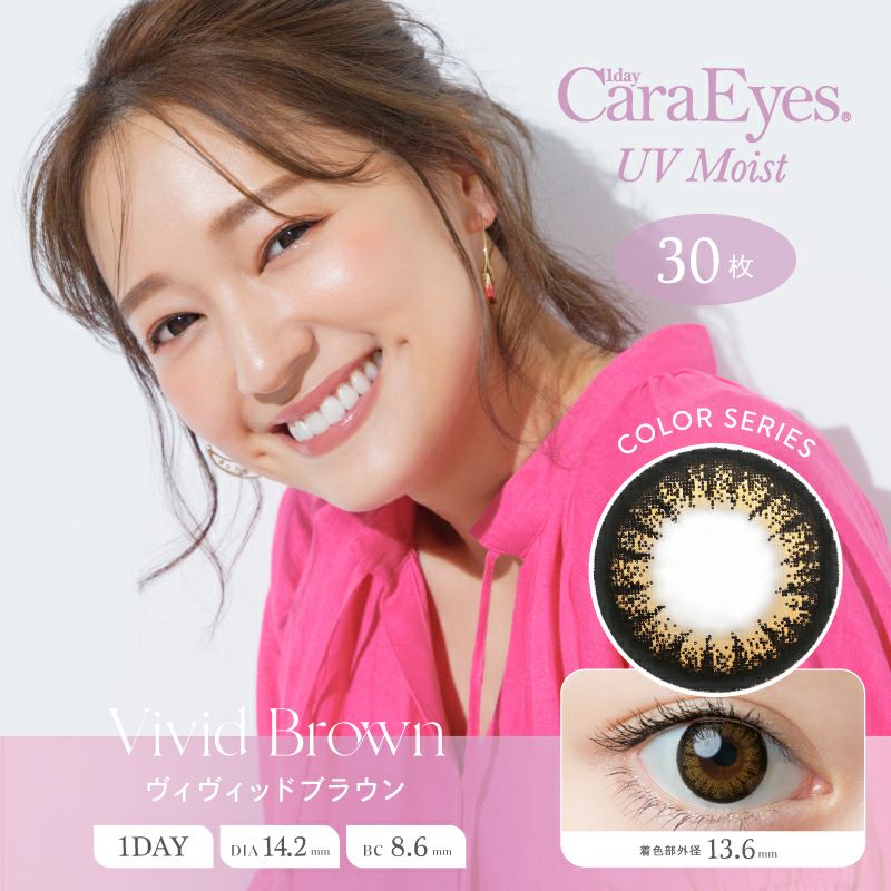 他の画像を見る 【即日発送NG】 1day Cara Eyes UV Moist Color Series ワンデーキャラアイ UVモイスト ヴィヴィッドブラウン(1箱30枚入り) 送料無料 UVカット 宅配便のみ うるおい成分 ナチュラル ハーフ瞳 ブラウン 1day DIA14.2mm 着色直径13.6㎜ BC8.6mm 含水率42.5% フチあり 販売価格 ¥ 3,707 税込 カートに入れる お気に入りに登録する