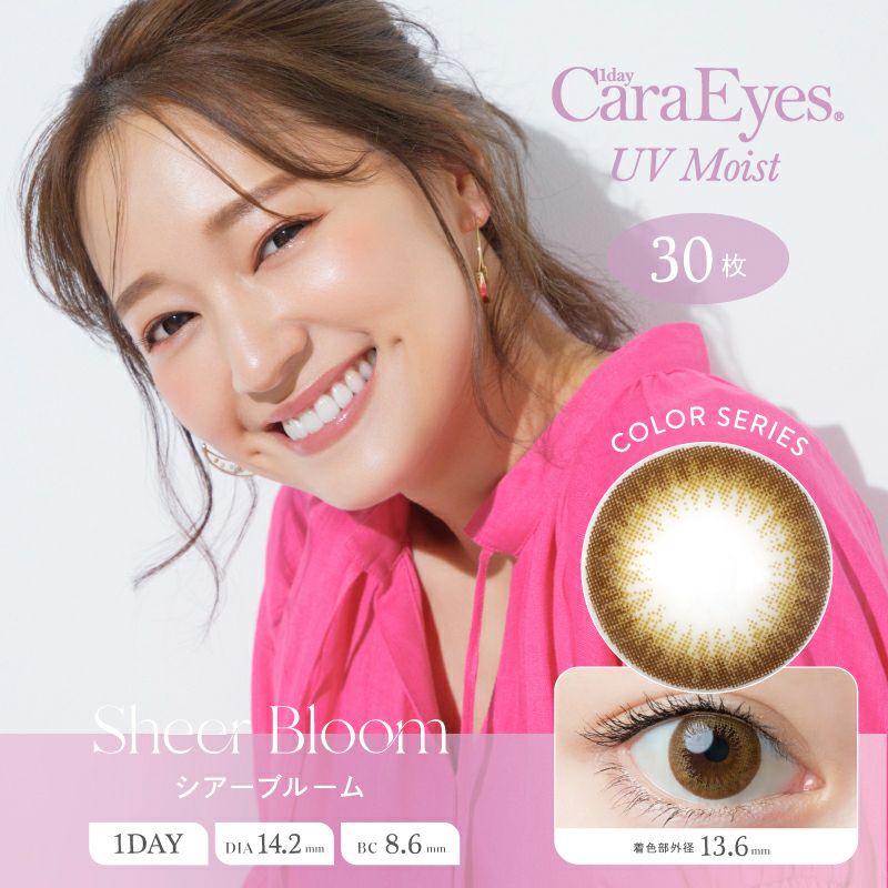 他の画像を見る 【即日発送NG】 1day Cara Eyes UV Moist Color Series ワンデーキャラアイ UVモイスト シアーブルーム(1箱30枚入り) 送料無料 UVカット 宅配便のみ うるおい成分 ナチュラル ハーフ瞳 ブラウン 1day DIA14.2mm 着色直径13.6㎜ BC8.6mm 含水率42.5% フチあり 販売価格 ¥ 3,707 税込 カートに入れる お気に入りに登録する
