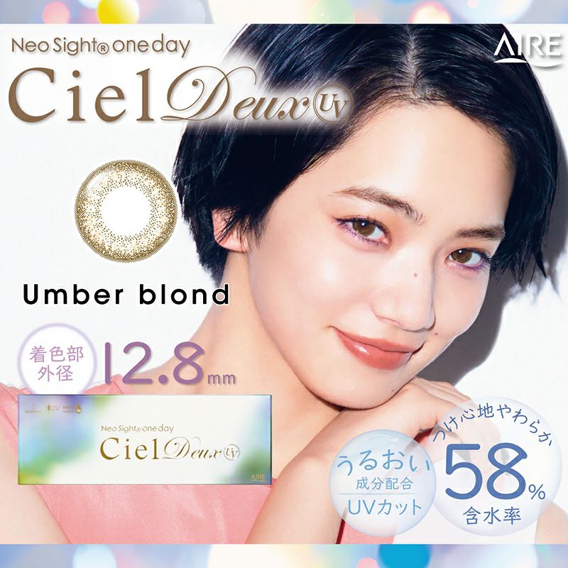 他の画像を見る 【在庫限りで終売】 NeoSight 1day CielDeux UV ネオサイトワンデー シエルデュウ UV アンバーブロンド(1箱30枚入り) 送料無料 即日発送 UVカット 宅配便のみ うるおい成分 ナチュラル ブラウン 1day DIA14.2mm 着色直径12.9㎜以下 BC8.8mm 含水率58% フチあり 販売価格 ¥ 3,920 税込 カートに入れる お気に入りに登録する