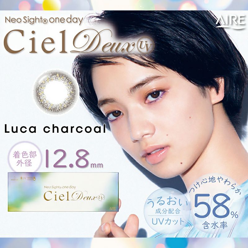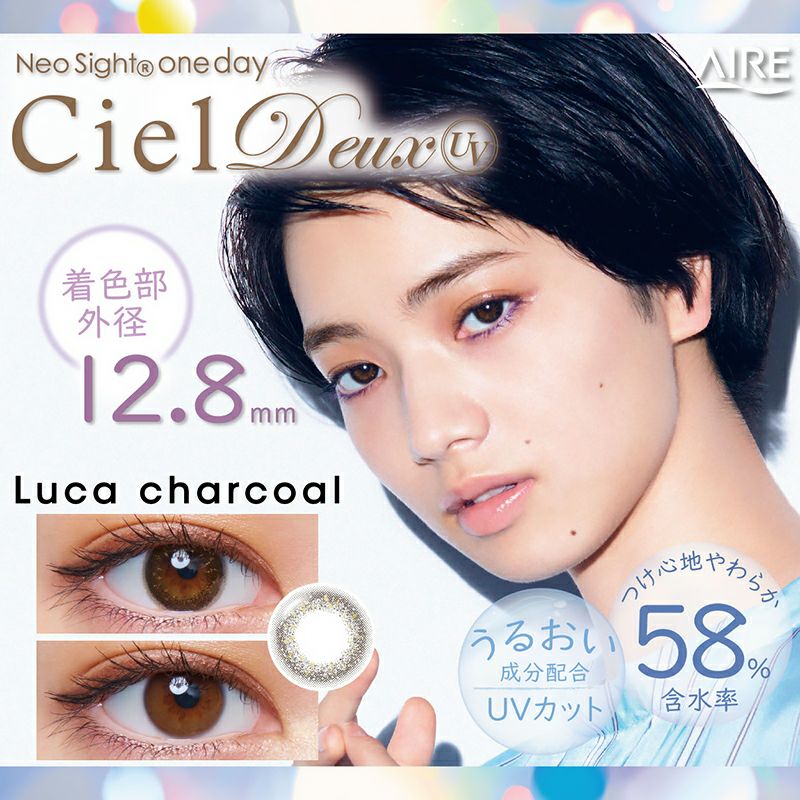 他の画像を見る 【在庫限りで終売】 NeoSight 1day CielDeux UV ネオサイトワンデー シエルデュウ UV ルカチャコール(1箱30枚入り) 送料無料 即日発送 UVカット 宅配便のみ うるおい成分 ナチュラル ブラック 1day DIA14.2mm 着色直径12.9㎜以下 BC8.8mm 含水率58% フチあり 販売価格 ¥ 3,920 税込 カートに入れる お気に入りに登録する