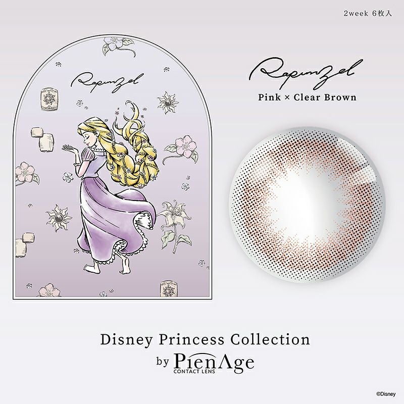 他の画像を見る 【即日発送NG】 Disney プリンセスコレクション <ラプンツェル> ピンク×クリアブラウン PienAge ピエナージュ 2week (1箱6枚入り) 送料無料 ネコポス UVカット うるおい成分 ナチュラル ブラウン ピンク 2week DIA14.2mm 着色直径13.3㎜ BC8.7mm 含水率55% フチあり 販売価格 ¥ 2,420 税込 カートに入れる お気に入りに登録する