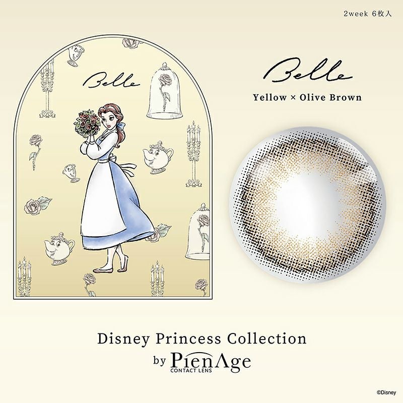 他の画像を見る 【即日発送NG】 Disney プリンセスコレクション <ベル> イエロー×オリーブブラウン PienAge ピエナージュ 2week (1箱6枚入り) 送料無料 ネコポス UVカット うるおい成分 ナチュラル ブラウン 2week DIA14.2mm 着色直径13.2㎜ BC8.7mm 含水率55% フチあり 販売価格 ¥ 2,420 税込 カートに入れる お気に入りに登録する