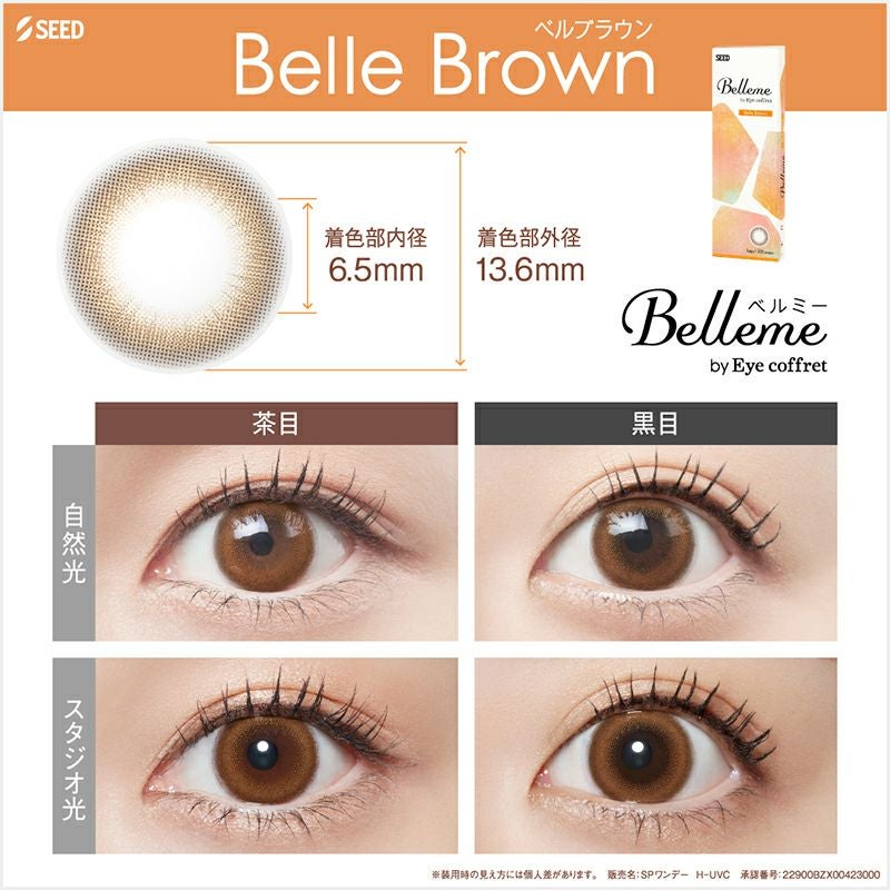 他の画像を見る 【即日発送NG】 Belleme by Eye coffret ベルミー by アイコフレ ベルブラウン(1箱10枚入り) 送料無料 ネコポス UVカット うるおい成分 ナチュラル ブラウン 1day DIA14.2mm 着色直径13.6㎜ BC8.7mm 含水率58% フチあり 販売価格 ¥ 1,870 税込 カートに入れる お気に入りに登録する