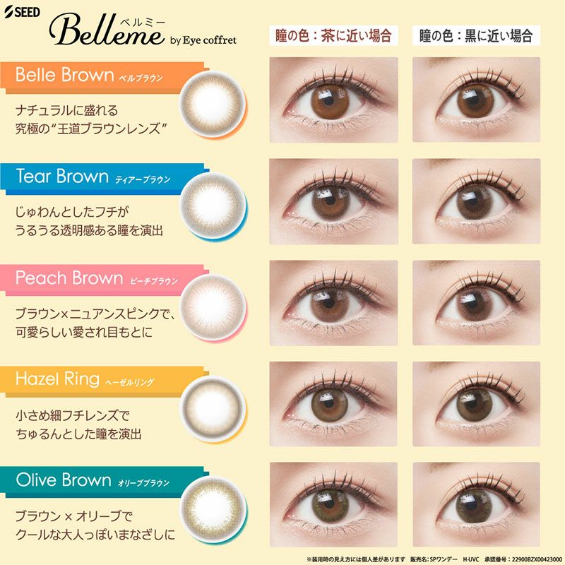 他の画像を見る 【即日発送NG】 Belleme by Eye coffret ベルミー by アイコフレ ティアーブラウン(1箱10枚入り) 送料無料 ネコポス UVカット うるおい成分 ナチュラル ブラウン 1day DIA14.2mm 着色直径13.6㎜ BC8.7mm 含水率58% フチあり 販売価格 ¥ 1,870 税込 カートに入れる お気に入りに登録する