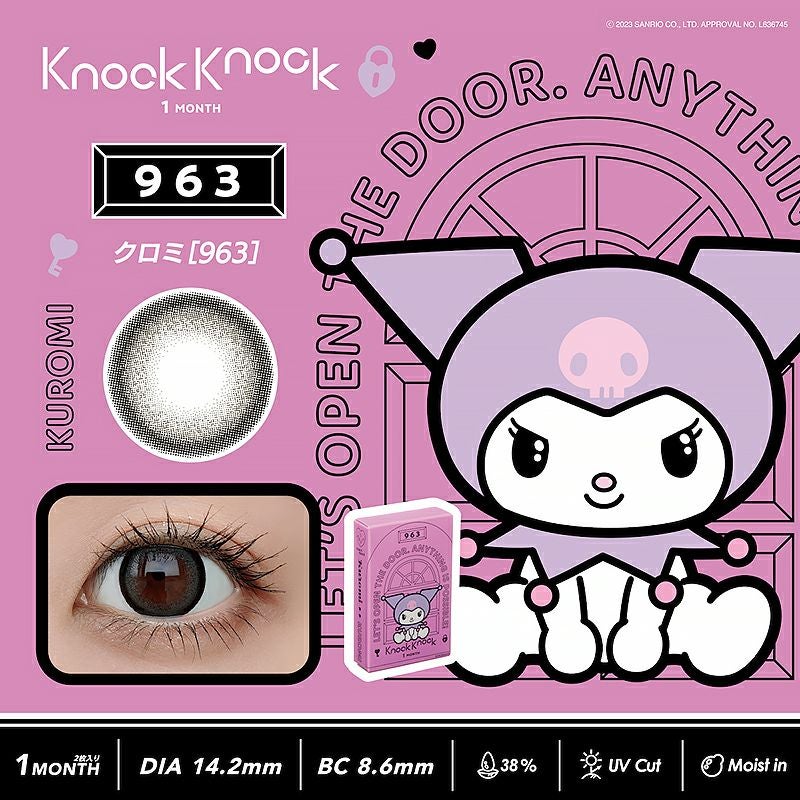 他の画像を見る 【即日発送OK♪】 KnockKnock×サンリオ 1MONTH ノックノック ワンマンス クロミ[963](1箱2枚入り) 送料無料 即日発送 ネコポス UVカット うるおい成分 ハーフ瞳 グレー 1ヶ月 DIA14.2mm 着色直径13.6㎜ BC8.6mm 含水率38% フチあり 販売価格 ¥ 1,408 税込 カートに入れる お気に入りに登録する