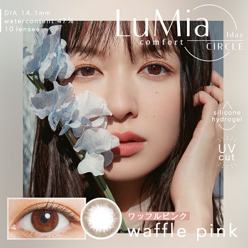他の画像を見る 【即日発送NG】 LuMia comfort 1day CIRCLE ルミア コンフォートワンデーサークル ワッフルピンク(1箱10枚入り) 送料無料 ネコポス UVカット うるおい成分 シリコン ナチュラル ブラウン ピンク 1day DIA14.1mm 着色直径13.2㎜ BC8.8mm 含水率47% フチあり 販売価格 ¥ 1,980 税込 カートに入れる お気に入りに登録する