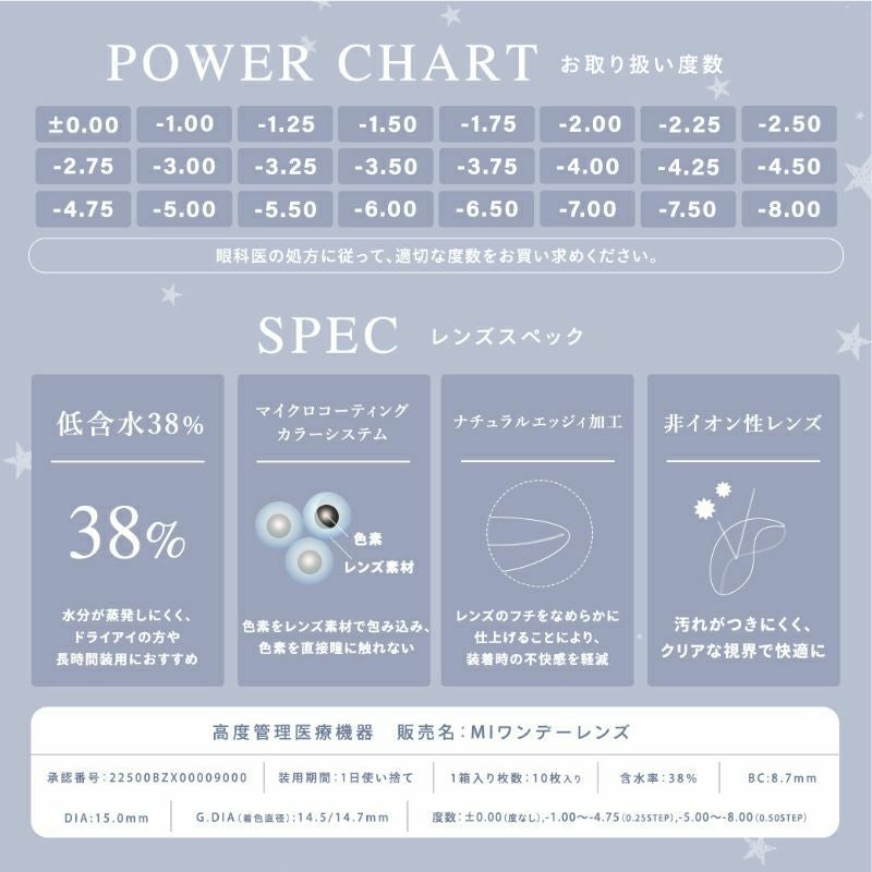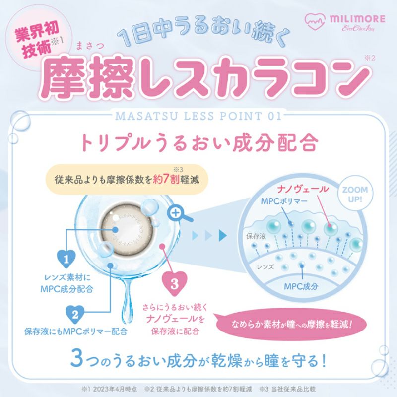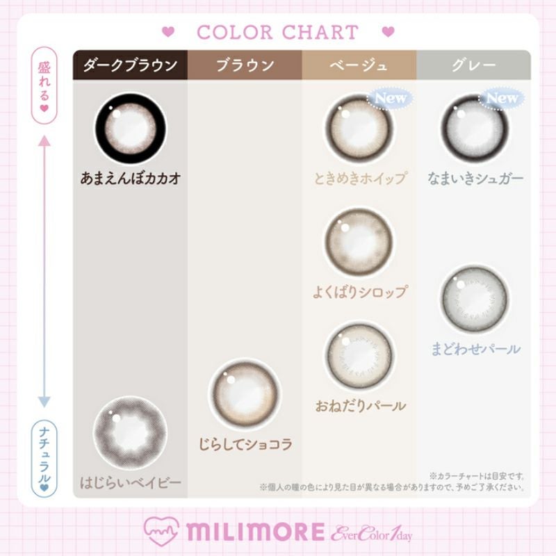 他の画像を見る 【即日発送OK♪】 EverColor1day MILIMORE エバーカラーワンデーミリモア なまいきシュガー(1箱10枚入り) 送料無料 即日発送 ネコポス UVカット うるおい成分 ナチュラル 色素薄い系 水光 グレー 1day DIA14.2mm 着色直径13.6㎜ BC8.7mm 含水率60% フチあり 販売価格 ¥ 1,694 税込 カートに入れる お気に入りに登録する
