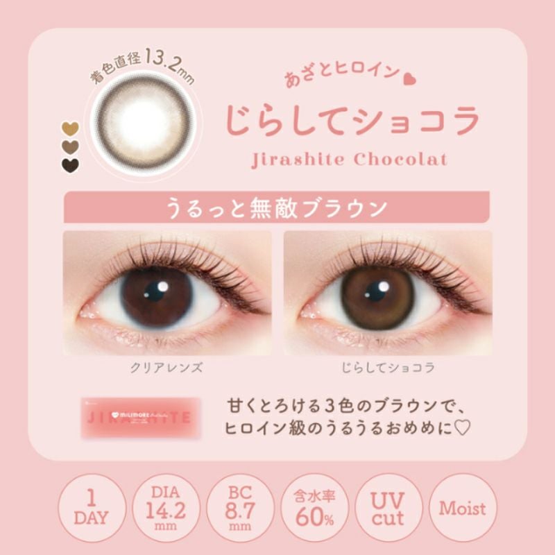 他の画像を見る 【即日発送OK♪】 EverColor1day MILIMORE エバーカラーワンデーミリモア じらしてショコラ(1箱10枚入り) 送料無料 即日発送 ネコポス UVカット うるおい成分 ナチュラル ブラウン 1day DIA14.2mm 着色直径13.2㎜ BC8.7mm 含水率60% フチあり 販売価格 ¥ 1,694 税込 カートに入れる お気に入りに登録する