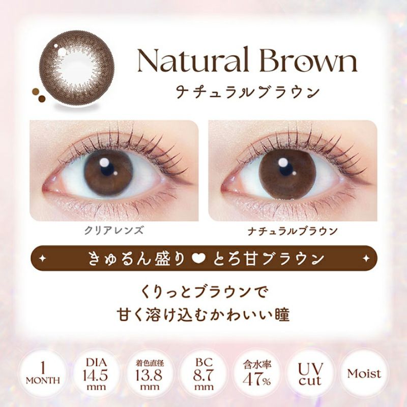 他の画像を見る 【即日発送OK♪】 Unrolla 1day silicone アンローラ シリコンハイドロゲル ルナンブラウン(1箱10枚入り) 送料無料 即日発送 ネコポス UVカット うるおい成分 シリコン ナチュラル ハーフ瞳 色素薄い系 水光 軸固定 ブラウン 1day DIA14.5mm 着色直径14.0㎜以上 BC8.7mm 含水率47% フチあり 販売価格 ¥ 1,815 税込 カートに入れる お気に入りに登録する